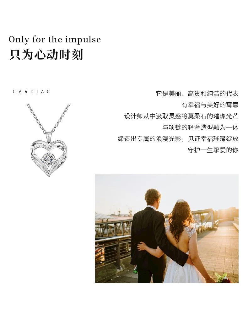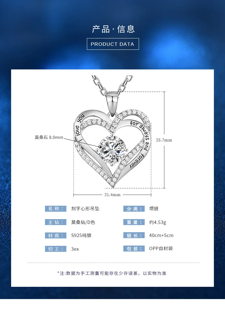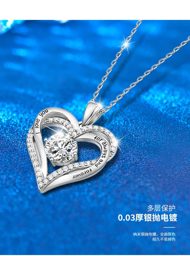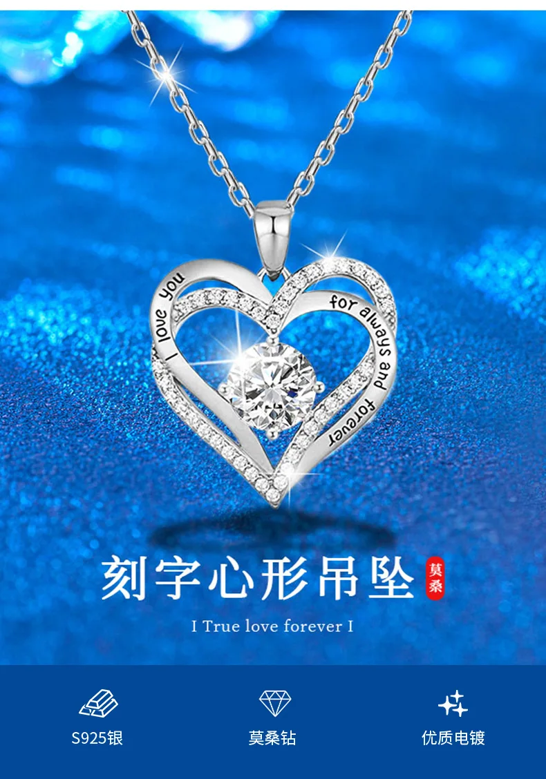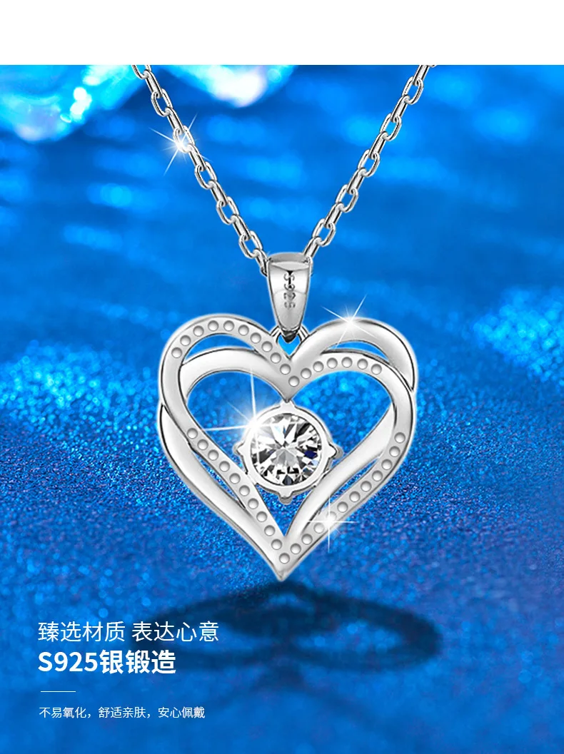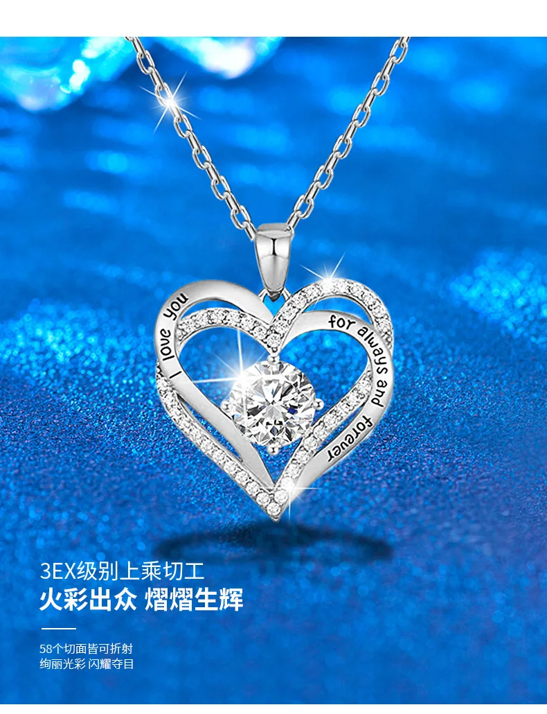 18K gold necklace pendant love gift 12 birthday moissanite heart-shaped niche collarbone neck chain D color